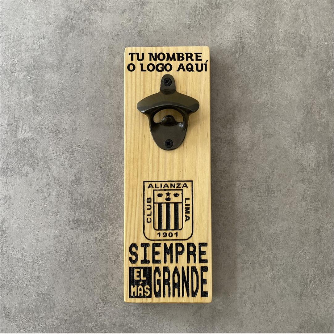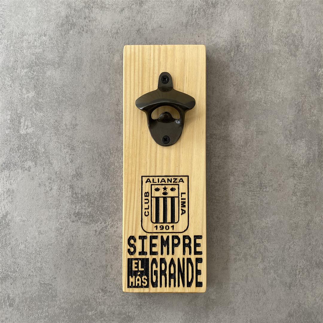 Son de madera de pino, grabado por láser profundo, el destapador es de metal fundido, viene con imán para que no se caigan las chapitas y con 2 cintas súper adhesivas para pegar en cualquier superficie. Mide 9cms de ancho x 27cms de alto.