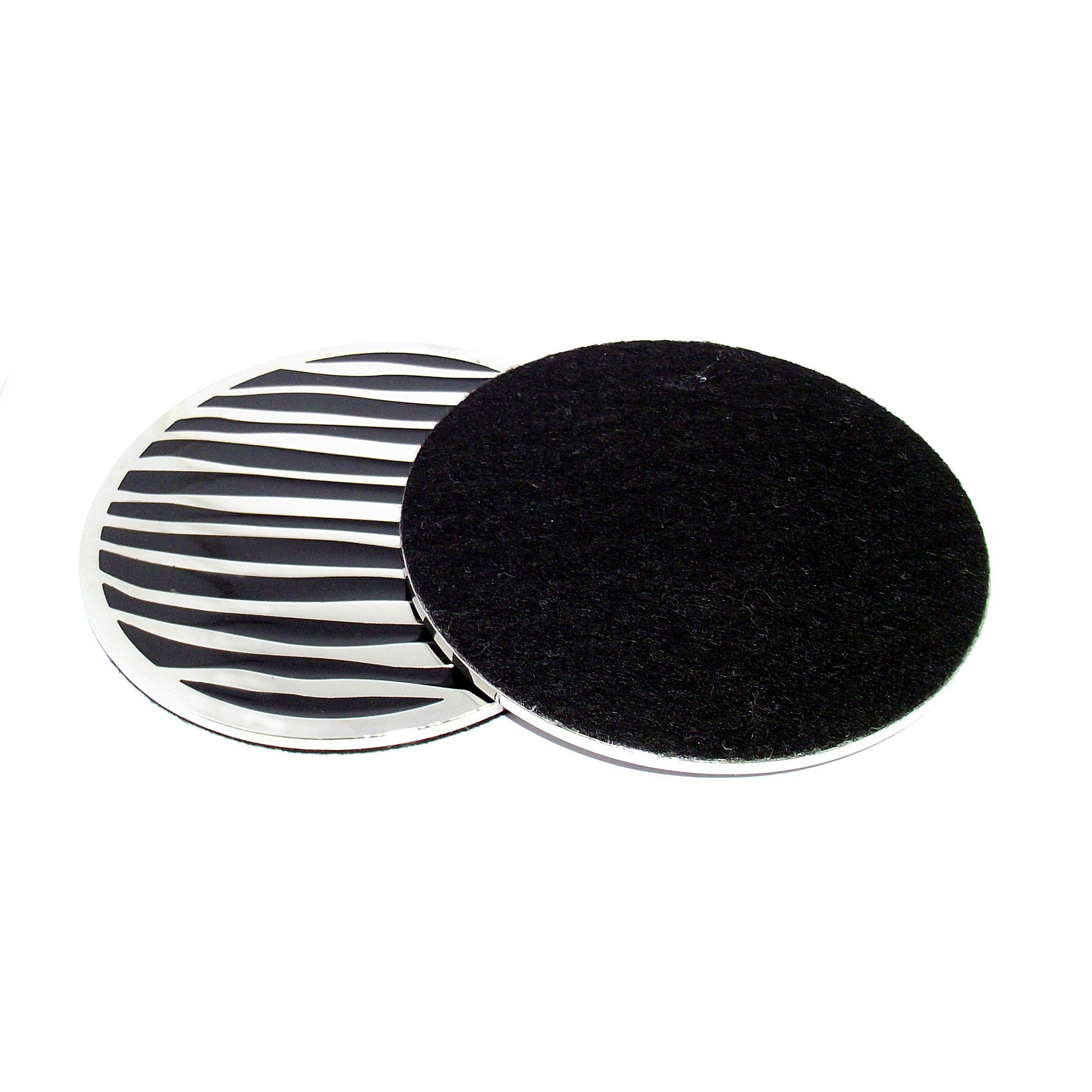 Lindos y elegantes posavasos metálicos. Vienen en juego de 4 unidades, con base de madera para guardarlos. Ideales a para decorar tu mesa y para regalar a tus personas especiales.