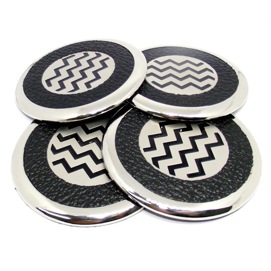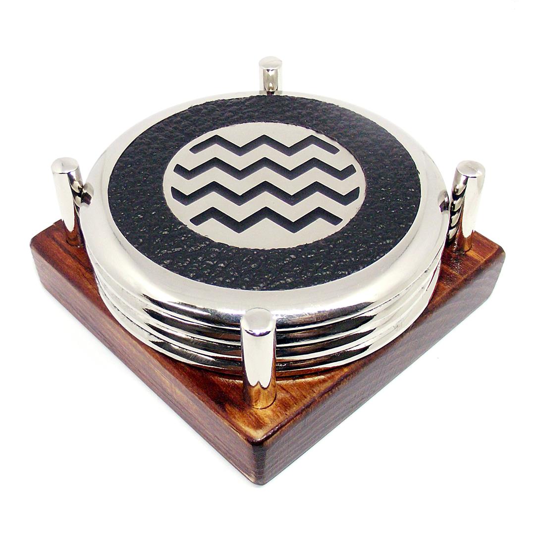Lindos y elegantes posavasos metálicos. Vienen en juego de 4 unidades, con base de madera para guardarlos. Ideales a para decorar tu mesa y para regalar a tus personas especiales.